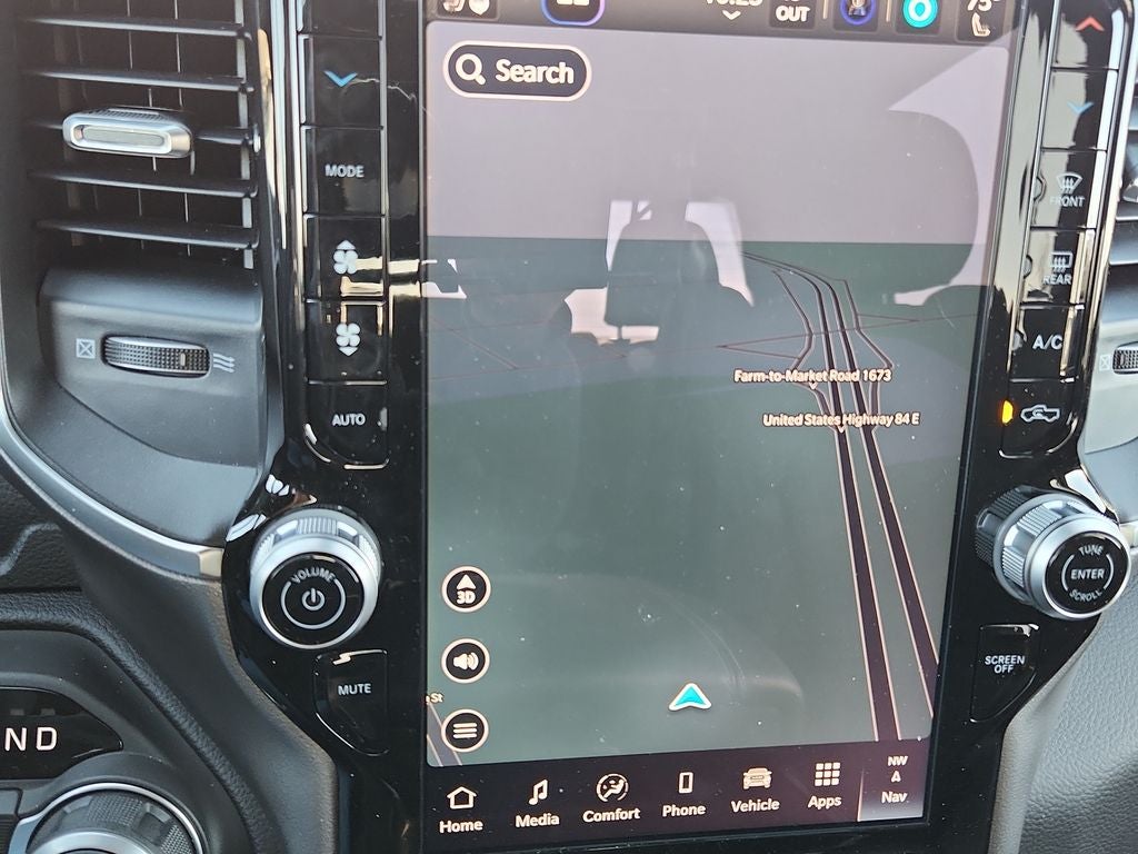 115V Auxiliary Power Outlet, 115V Auxiliary Rear Power Outlet, 12 Touchscreen Display, 2nd Row in Floor Storage Bins, 3 Rear Seat Head Restraints, 4 Way Front Headrests, 400W Inverter, 4G LTE Wi-Fi Hot Spot, 9 Amplified Speakers with Subwoofer, Air Conditioning ATC with Dual Zone Control, Apple CarPlay, Auto Power-Folding Mirrors, Auto-Dimming Exterior Driver Mirror, Auto-Dimming Rear-View Mirror, Big Horn Level 2 Equipment Group, Black Exterior Mirrors, Black Interior Accents, Black Premium Power Mirrors, Body Color Door Handles, Body Color Fender Flares, Body Color Front Bumper, Body Color Rear Bumper with Step Pads, Body Color Tailgate Handle, Bucket Seats, Center Console Parts Module, Cluster 7.0 TFT Color Display, Configurable Drive Mode, Connected Travel and Traffic Services, Connectivity - US/Canada, Convex Wide-Angle Exterior Mirror Insert, Deluxe Cloth Bucket Seats, Disassociated Touchscreen Display, Exterior Mirrors Courtesy Lamps, Exterior Mirrors with Heating Element, Exterior Mirrors with Supplemental Signals, Front Seat Back Map Pockets, Full Length Floor Console, Global Telematics Box Module, Glove Box Lamp, Google Android Auto, GPS Antenna Input, GPS Navigation, Grille Surround 1 Body Color Texture 1 Black, HD Radio, Heated Front Seats, Heated Steering Wheel, Integrated Center Stack Radio, Integrated Voice Command with Bluetooth®, Leather Wrapped Steering Wheel, LED Dome Lamp with on/Off Switch, LED Footwell Lighting, Lone Star Badge, Manual Adjust 4-Way Front Passenger Seat, Media Hub with 2 Charge Only USBs, Overhead LED Lamps, Power 2-Way Driver Lumbar Adjust, Power Adjust 8-Way Driver Seat, Power Adjustable Pedals, Premium Overhead Console, Quick Order Package 21R Lone Star, Radio: Uconnect 5 Navigation with 12.0 Display, RAM Grille Badge - Chrome, Rear 60/40 Folding Seat, Rear Center Armrest, Rear Power Sliding Window, Rear Window Defroster, Remote Tailgate Release, Security Alarm, SiriusXM Radio Service, SiriusXM with 360L, Sport Appearance Package, Steering Wheel Mounted Audio Controls, Sun Visors with Illuminated Vanity Mirrors, Universal Garage Door Opener, USB Host Flip, Wheels: 20 x 9 Aluminum Chrome Clad.