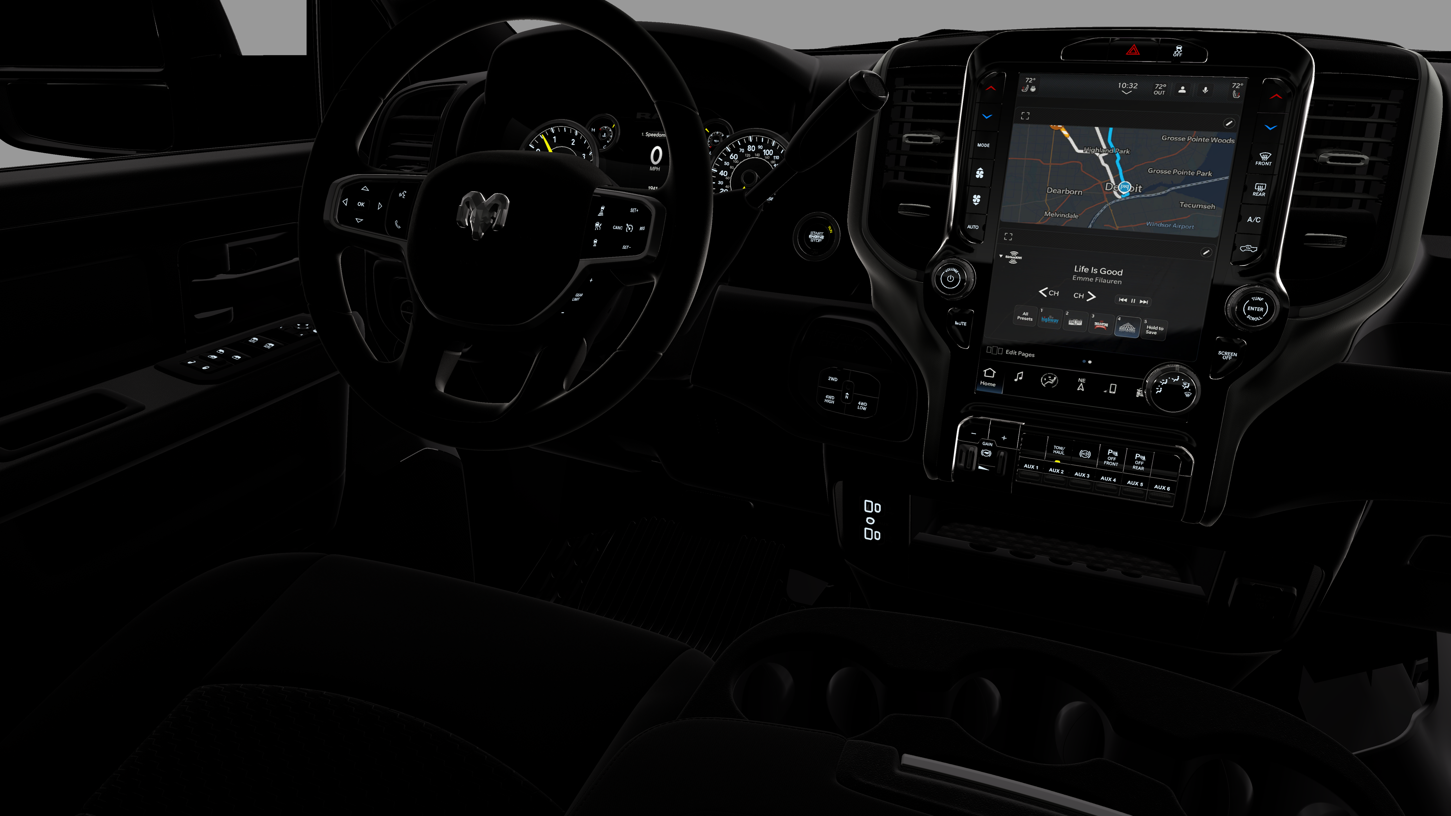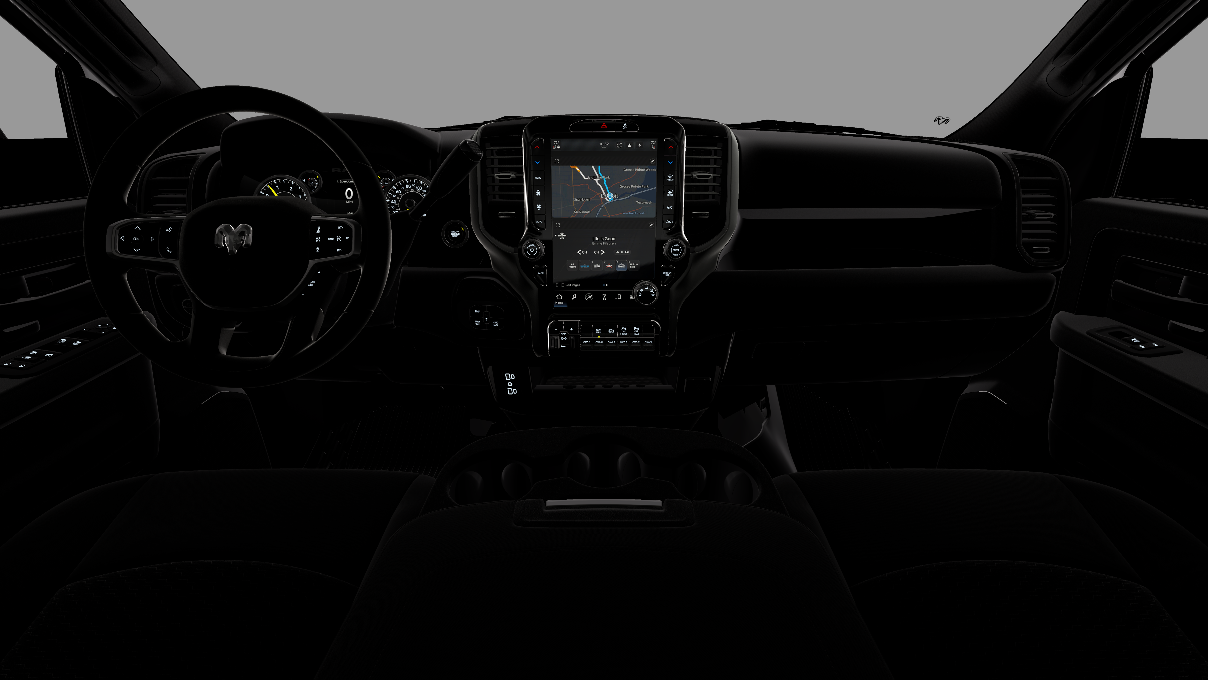 - Radio w/Seek-Scan, Clock, Speed Compensated Volume Control, Aux Audio Input Jack, Voice Activation, Radio Data System and Uconnect External Memory Control